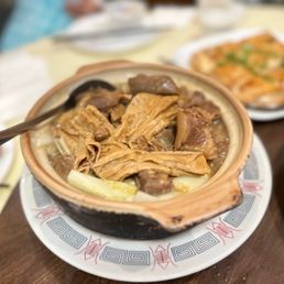 This restaurant served some very special entrees i have not seen @ others. 2 of us came on a Sunday noon, not difficult finding a street parkings. Restaurant was pretty good in size, we picked a nice corner seats. The Services were detailed and very friendly, 2 of us over ordered so we can try here also bring home to enjoy later. We ordered: *Chinese Bacon w/Preserved Green $19.95 *Stuffed Chicken w/Sticky Rice (adv Order)$59 *Tai Shan Style Braised Duck(half) $28.95 *Sticky Rice in Lotus Leaf $18.95 *Salt & Baked chicken (half)$19.95 All yummy good, yes I 100% recommended this Hakka restaurant.